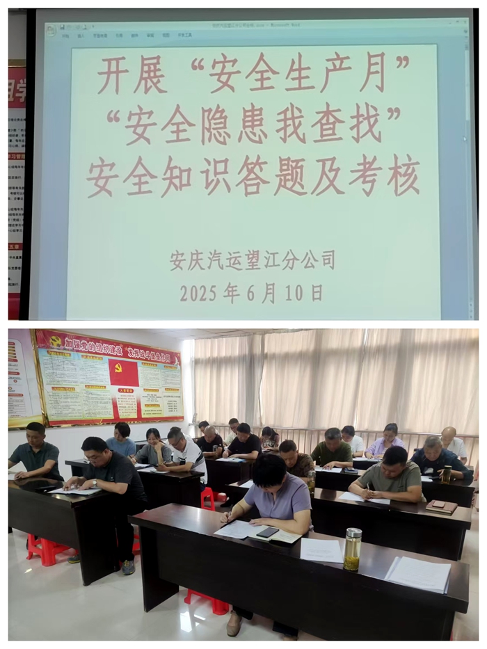 為積極響應“人人講安全、個個會應急——查找身邊安全隱患”的安全生產(chǎn)月主題號召,進一步加強客運企業(yè)安全管理工作,切實增強全體員工的安全意識與應急處置能力,望江分公司于6月10日上午精心組織了一場全員參與的安全知識答題活動,旨在讓安全知識真正扎根于每位員工心中,并切實轉化為日常工作的實際行動。