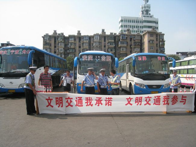 9月4日,市客運分公司與交警支隊二大隊在安慶汽車站停車場內(nèi)開展“文明交通我承諾,文明交通我參與”駕駛員簽名活動;顒邮紫扔山痪ш牰箨牰嘘牀钪笇T宣傳5種易發(fā)生道路交通事故的不良及違法駕駛行為,楊指要求駕駛員駕駛車輛做到:不超員、不超速、不疲勞駕駛、不酒后駕駛、不無證駕駛,做文明禮讓安全行車的文明駕駛員;隨后進行了駕駛員簽名,市客運分公司110名未當班的駕駛員參加了本次簽名活動。